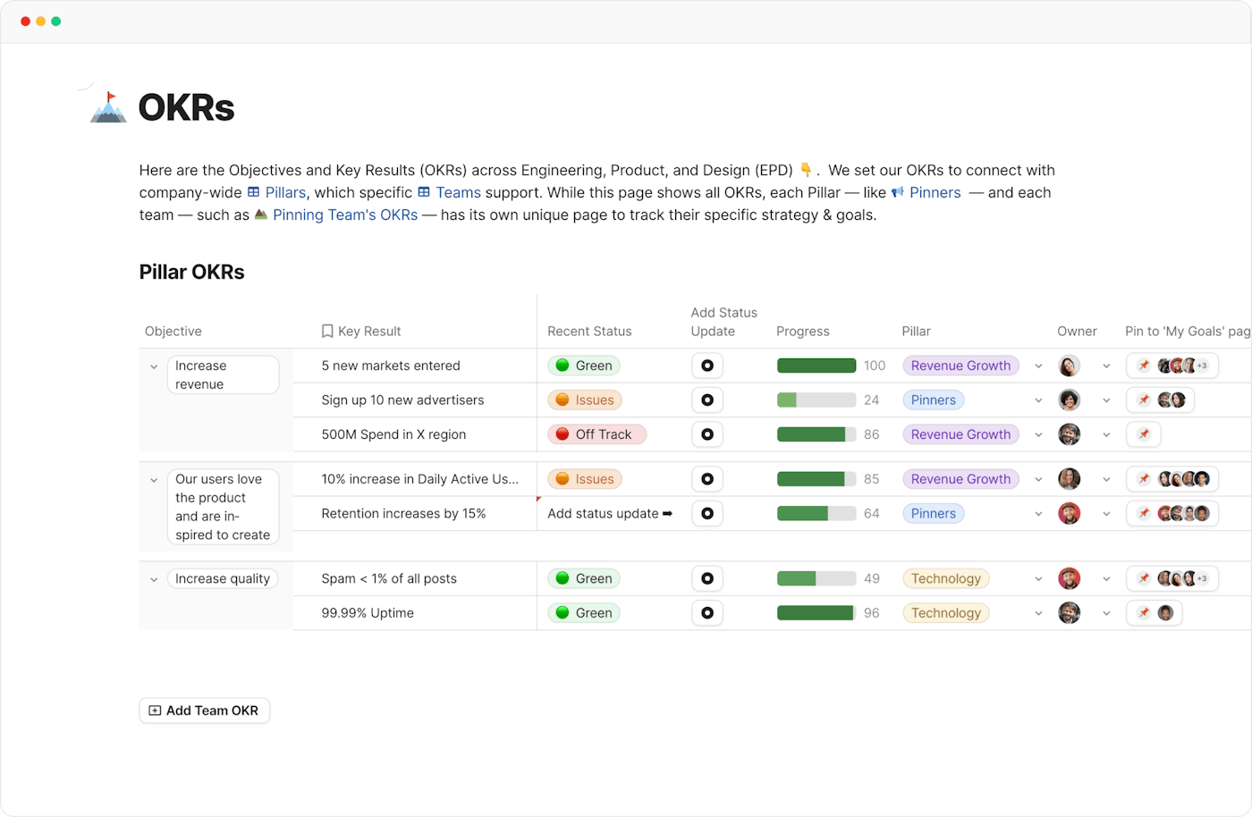 - Company level — I’d like us to be more thoughtful about our rituals and ensure we’re creating the tools we think will lead to the highest impact. Here’s a link to the best docs in our Gallery. Personally I’d start with your team wiki, planning process, or OKRs.