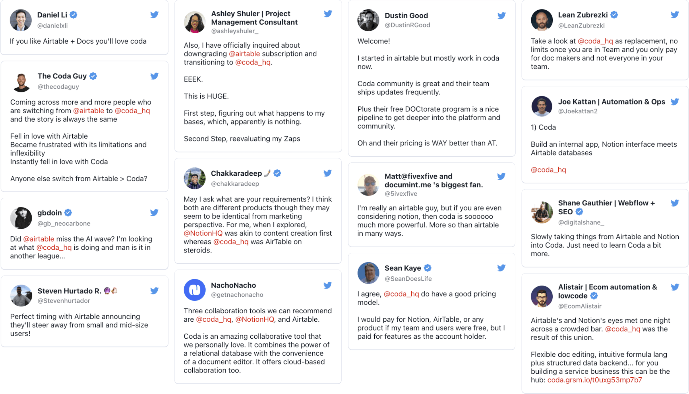 “Coda is like Word/Docs with the functionality of Excel/Sheets/Airtable and the look of Notion – take all that and put it on steroids... What you end up with is just a doc, the way docs should be.”