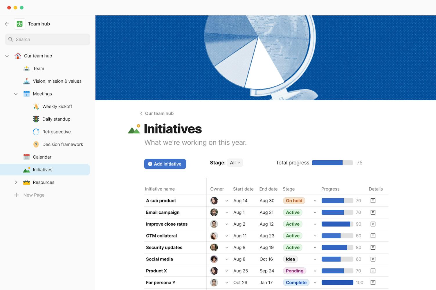 Your team needs more than a task board. Coda’s building blocks—nested pages, embedded content, and more—free your team to customize solutions that work for them.