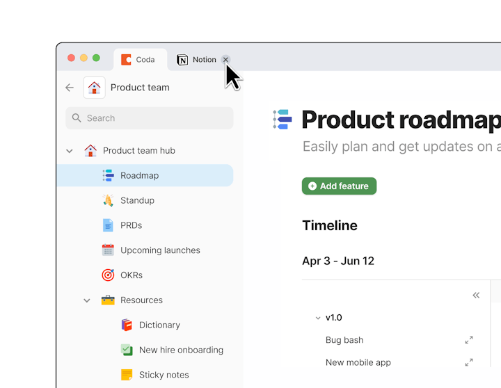 Teams with complicated workflows and datasets quickly run up against Notion’s constraints. Coda is built for collaboration and flexibility at any stage.