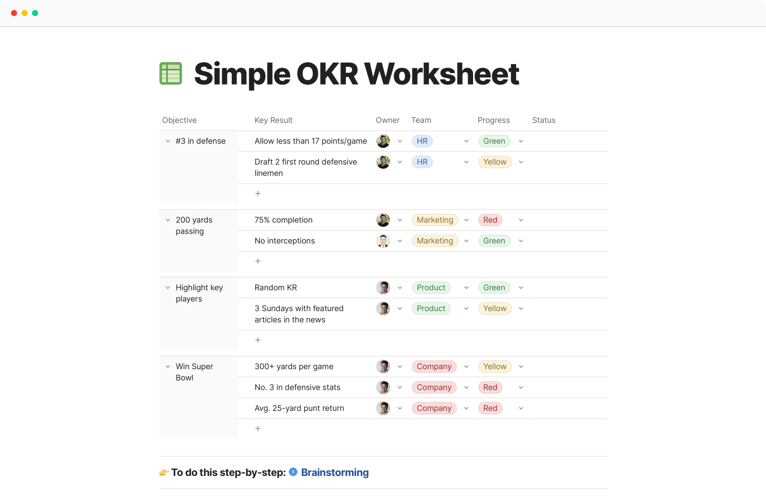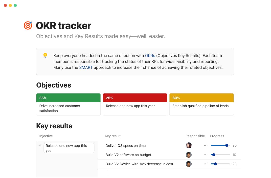 At the end of planning, will your team have a list of OKRs? A resource map? Something else? Whatever you decide, Coda evolves and scales with the needs of your team.