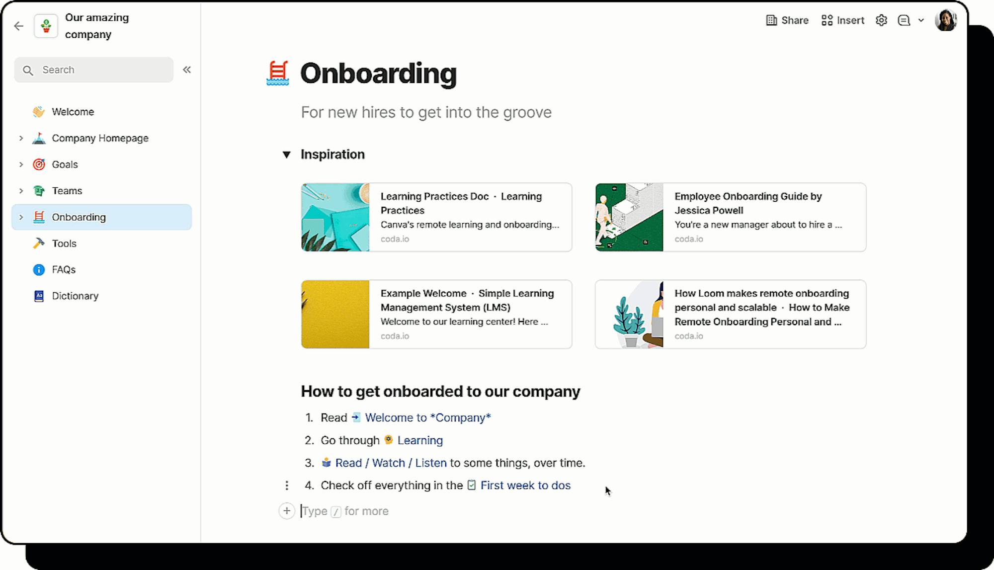 Get started in CodaBuild a doc with live, hands-on guidance.