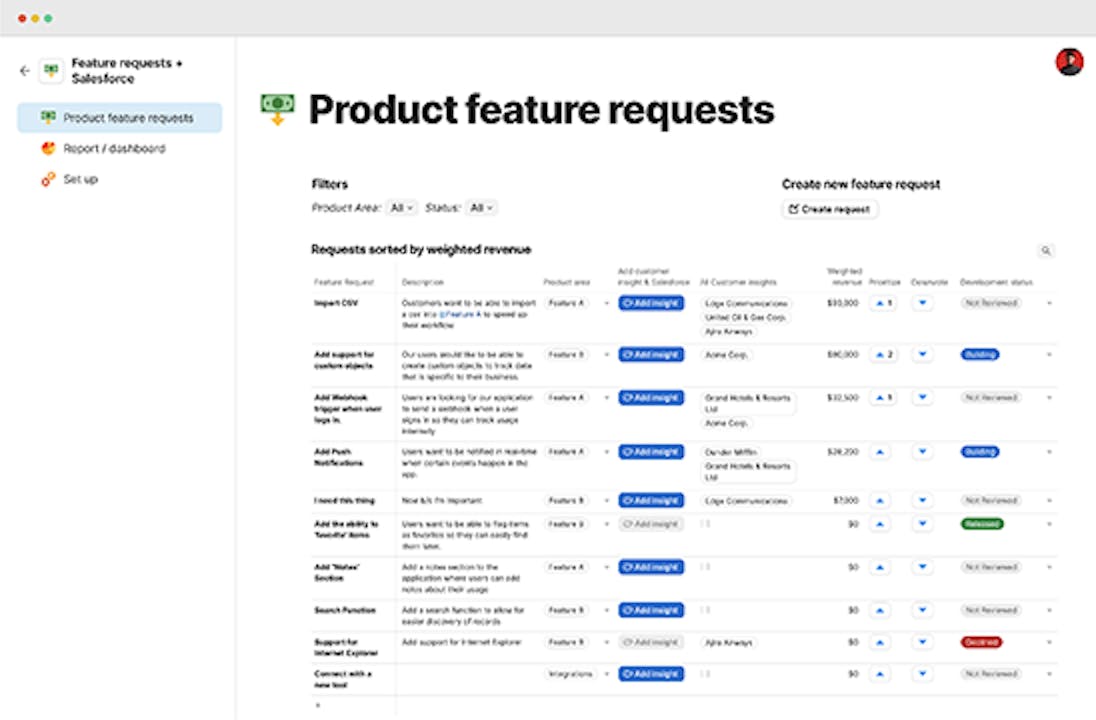 Bring notes from the field into your Salesforce accounts to help prioritize your roadmap.