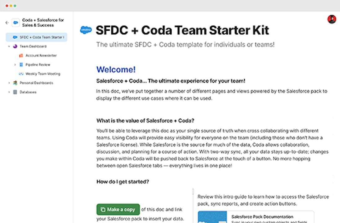 SDFC + Coda Team Starter Kit