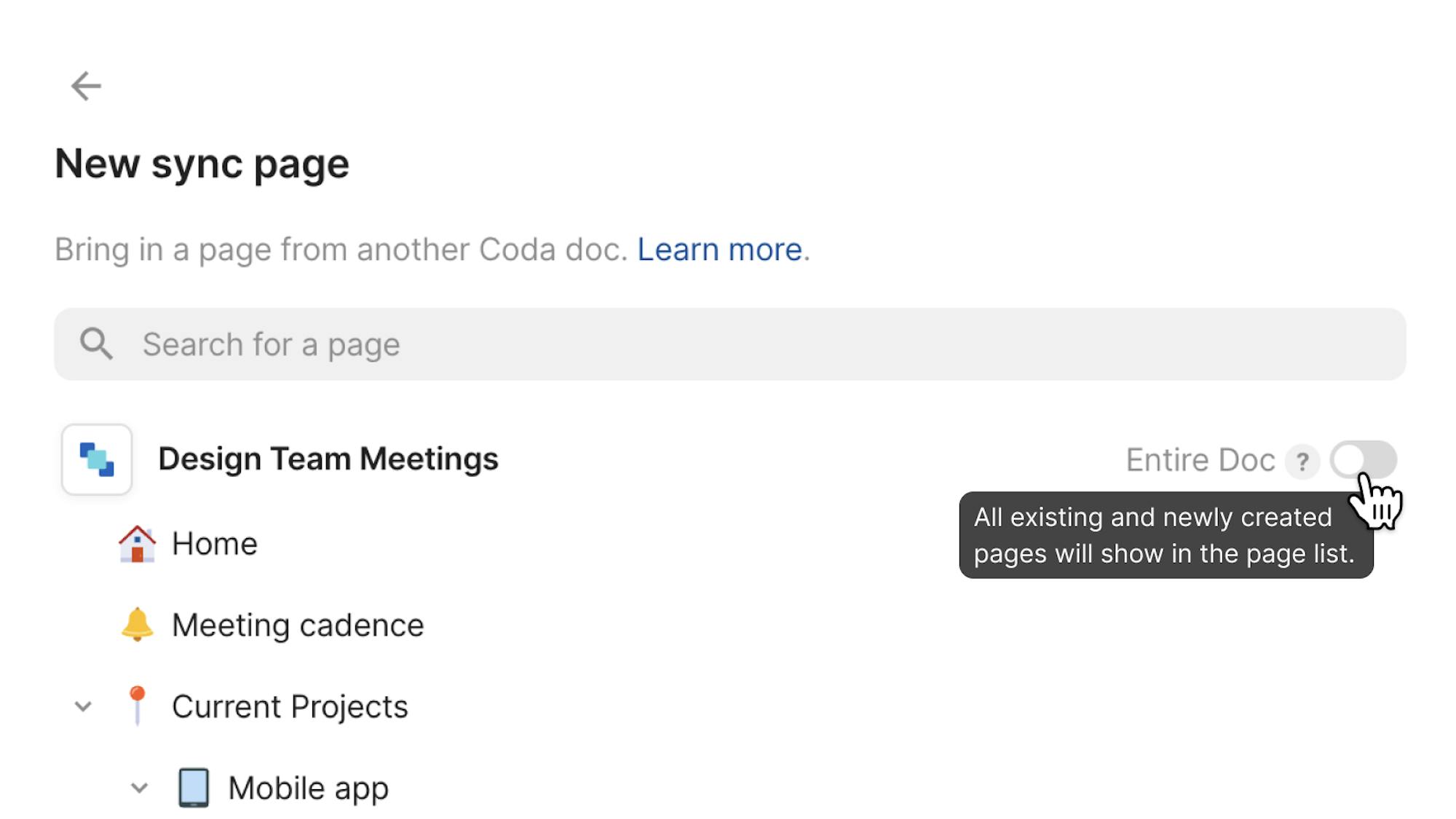 Full-page embeds of Coda pages are now sync pages! And you can now include all of the sub-pages of a page as well.