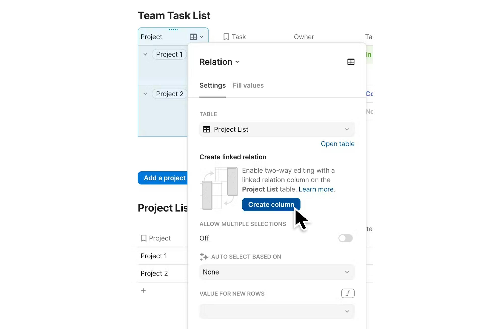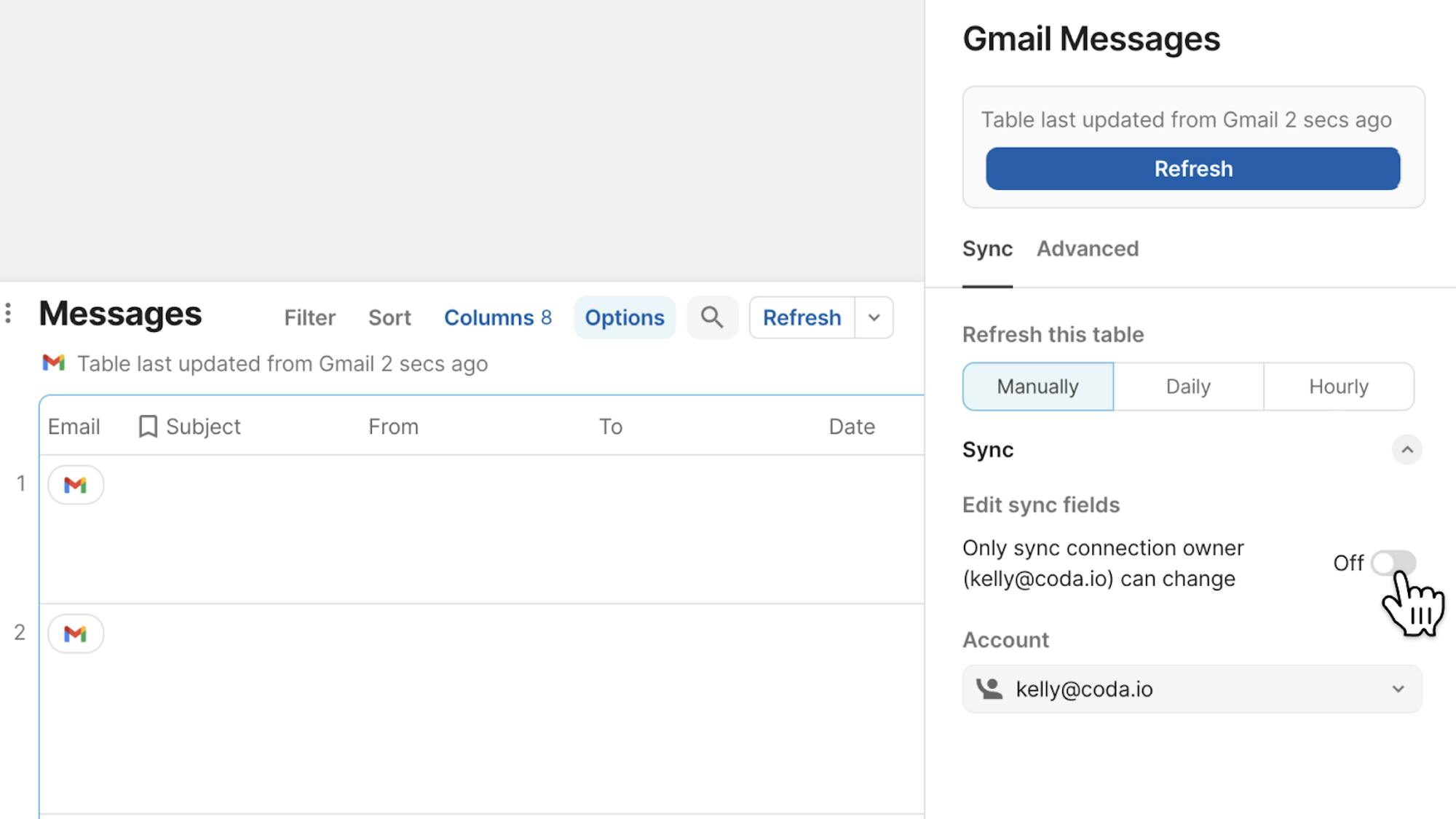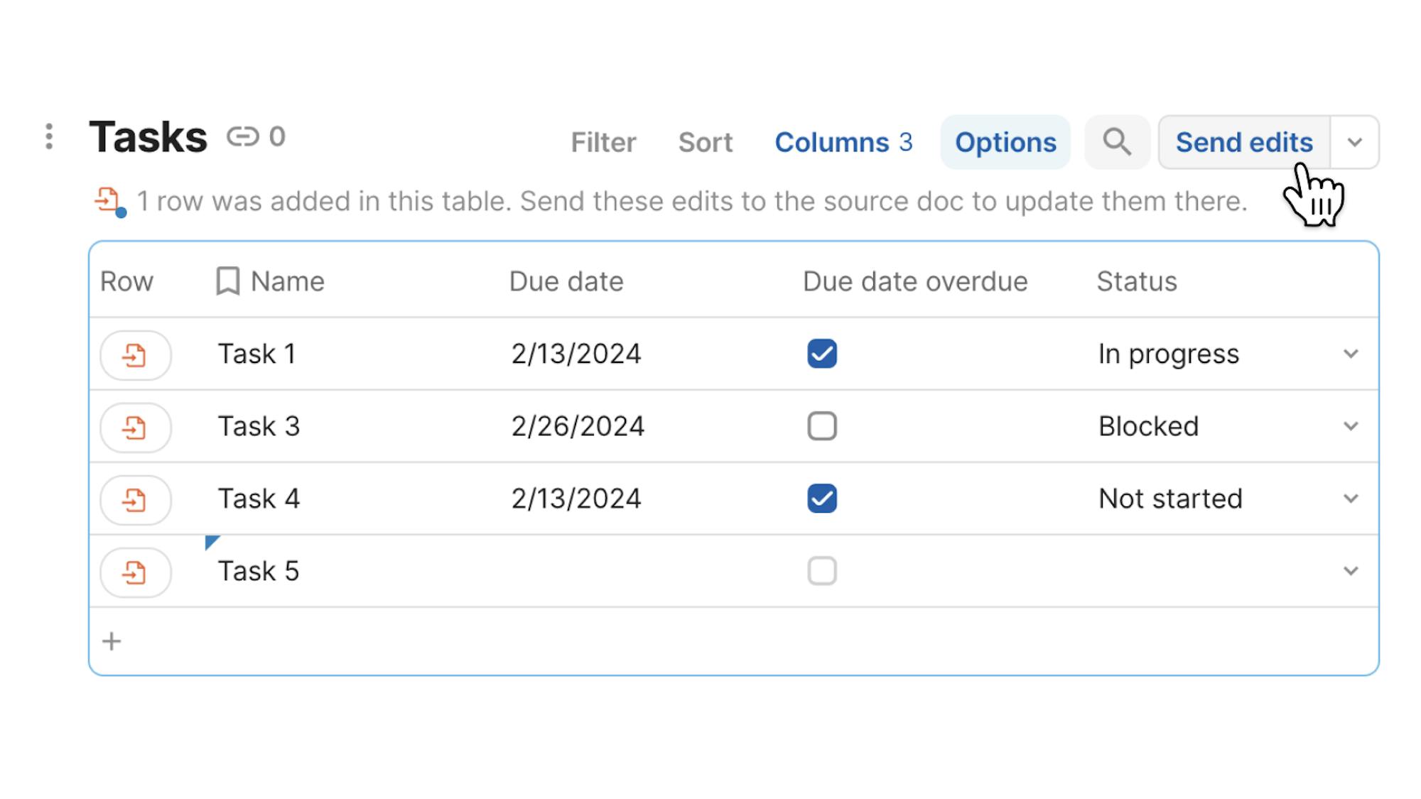 No need to to go back to the source of a Cross-doc table to add or delete a row—with two-way sync enabled, you can now do so directly from the sync table.