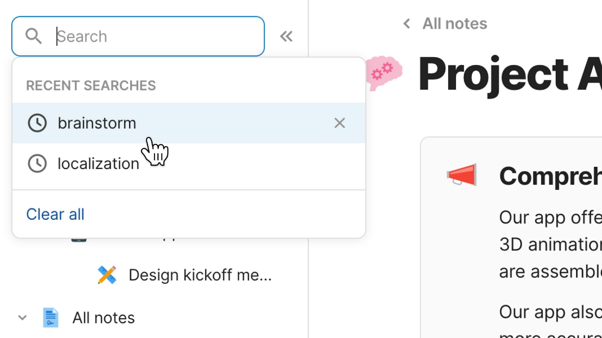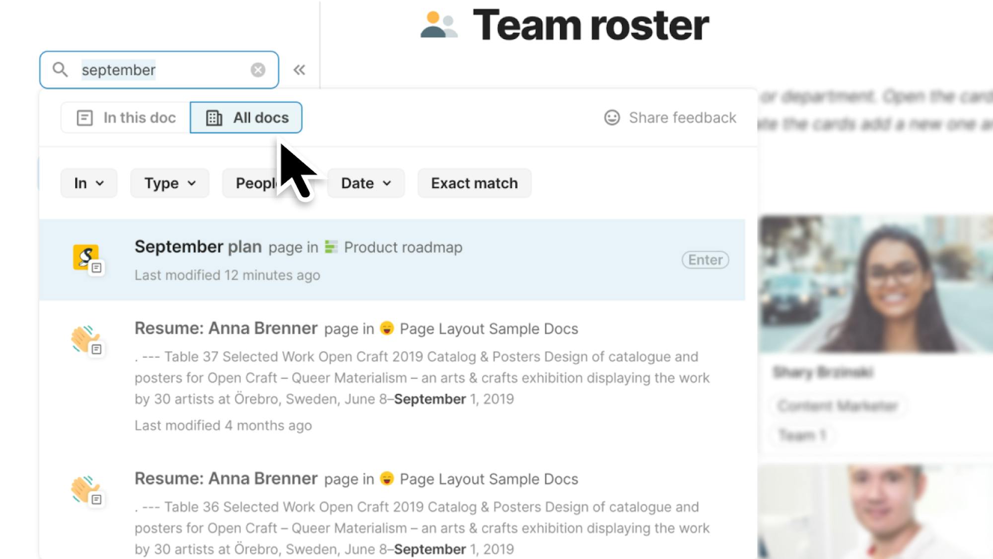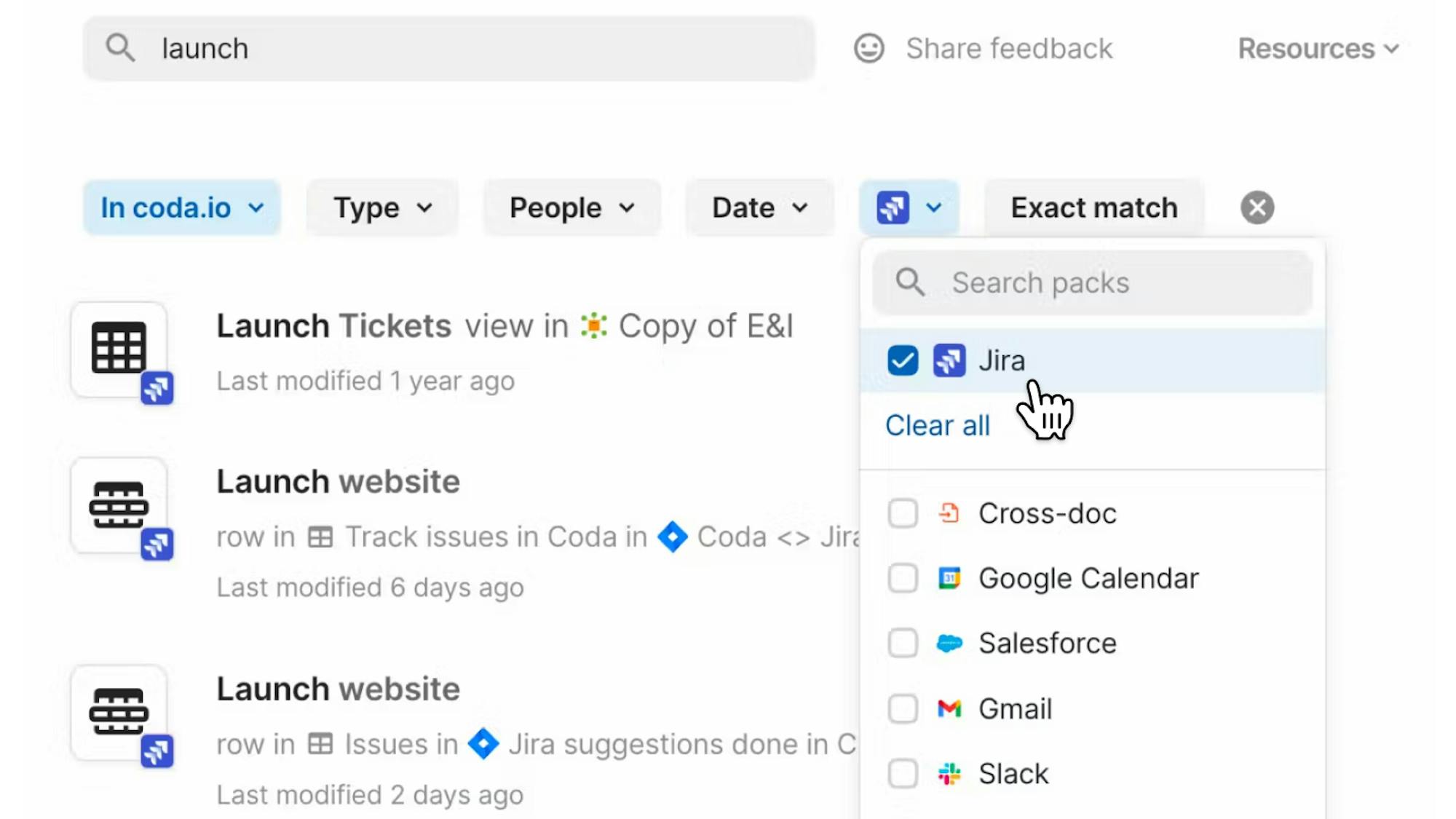 Searching across your docs will now surface content from tables, in addition to canvas content. You can also use the new Packs filter to refine search results to synced content from specific Packs.