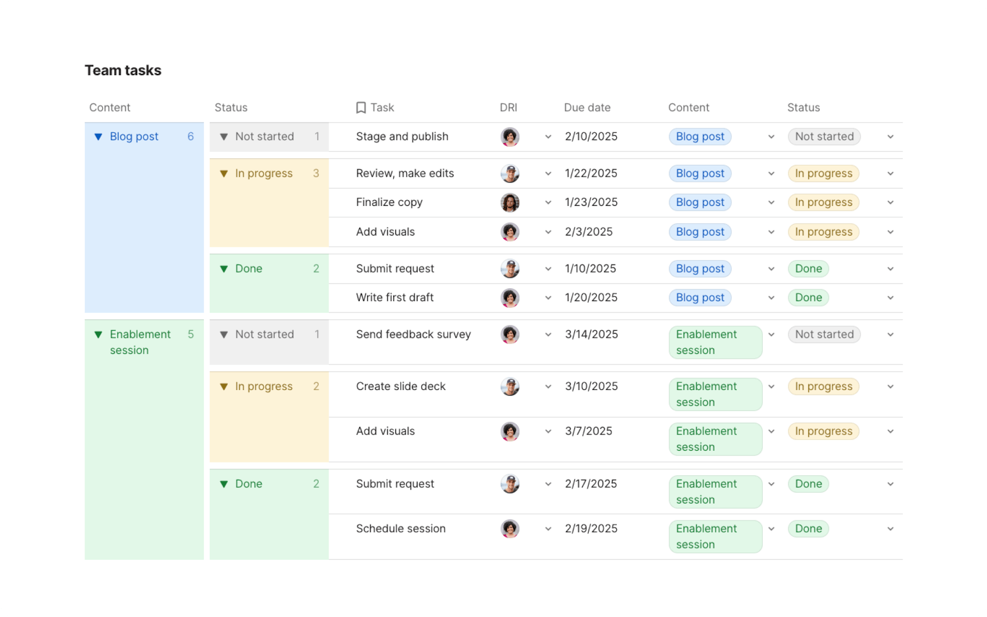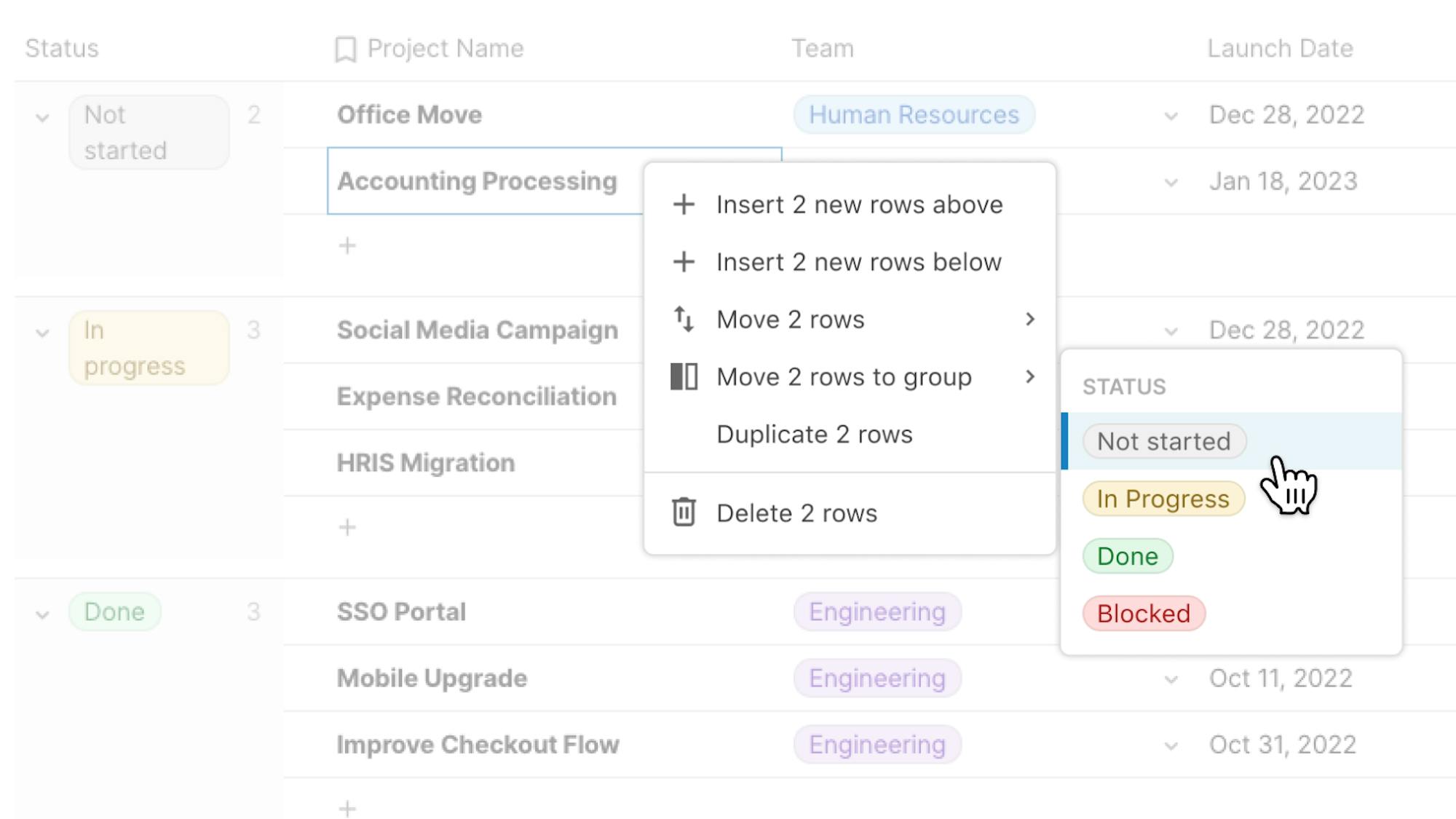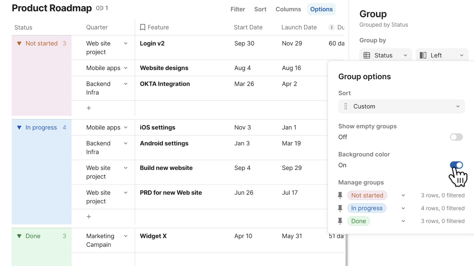 When grouping by a color-coded select list or relation, the entire group display now has that color. Scanning, locating related info, and making connections across your data is easier than ever.