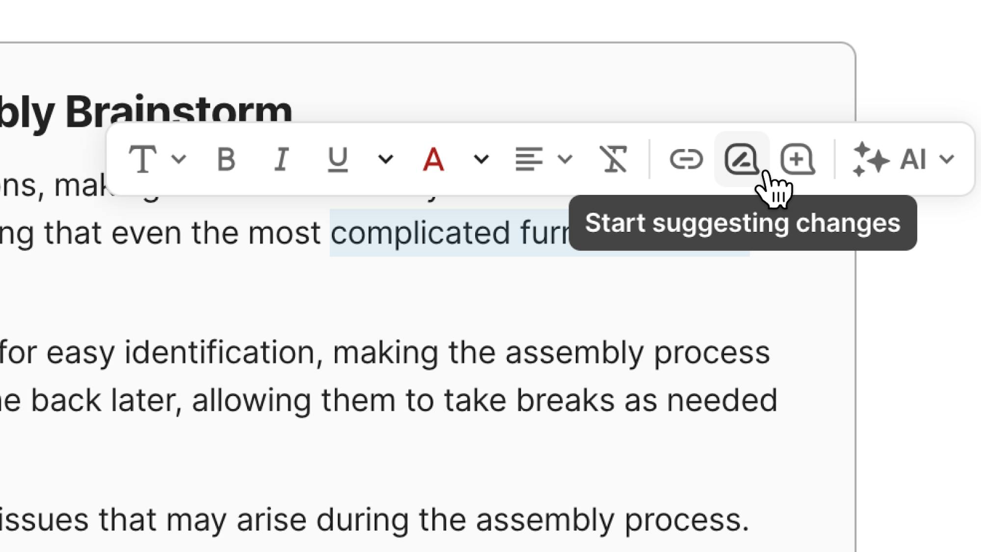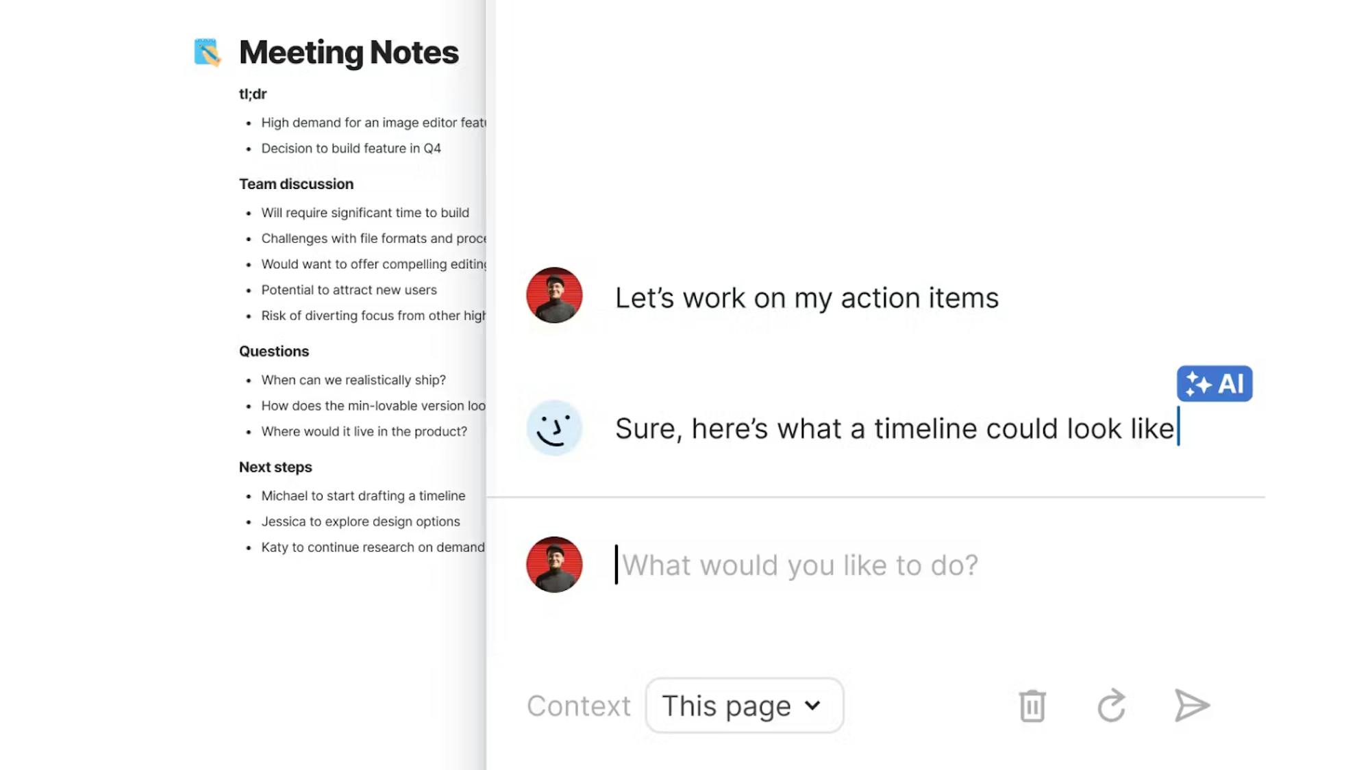 Brainstorm ideas, iterate on content, or get answers across your doc.