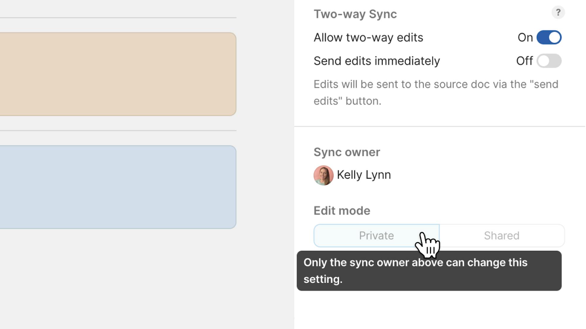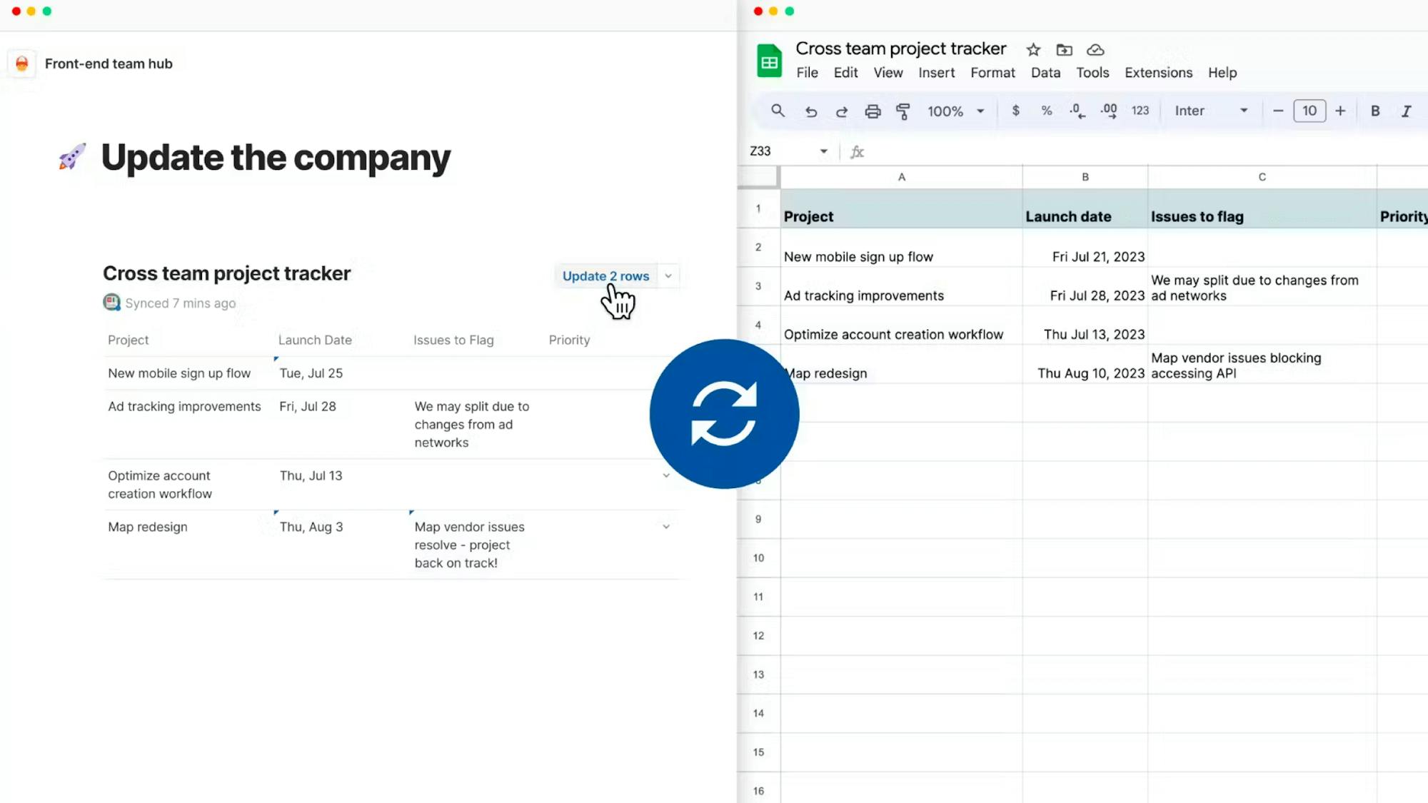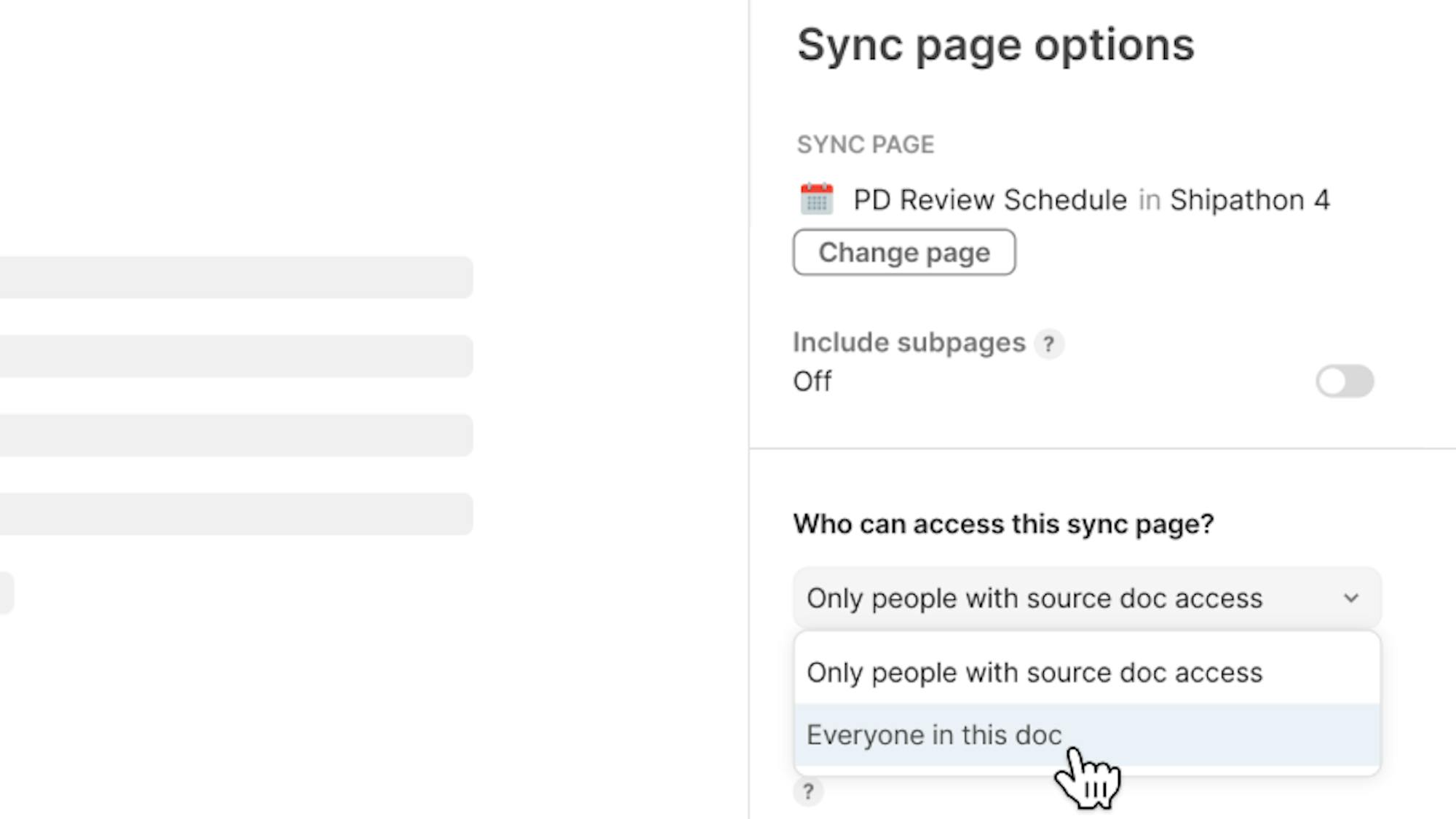 Sync specific pages into another doc without everyone needing access to the source, giving collaborators visibility while keeping information secure.