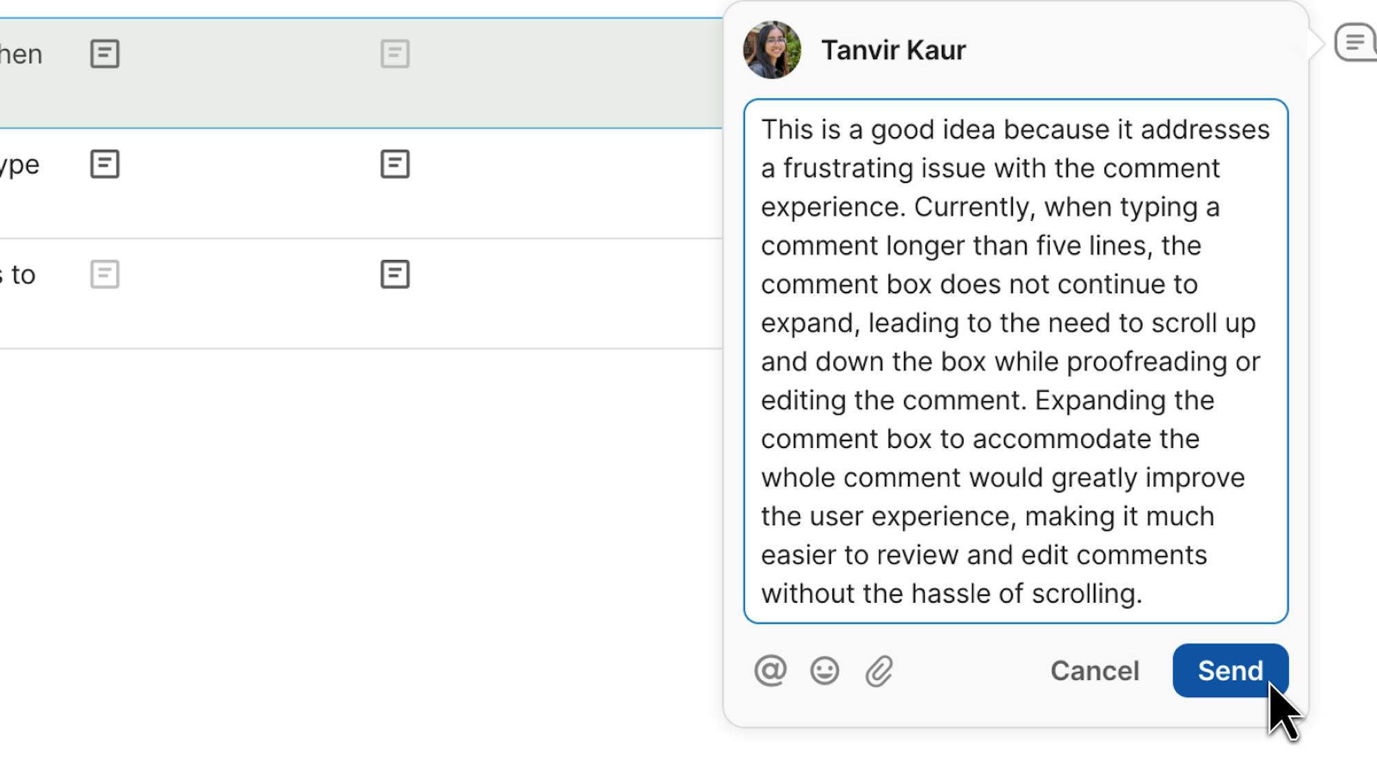 The comment box will expand when you’re writing a long comment, so you never lose your place.