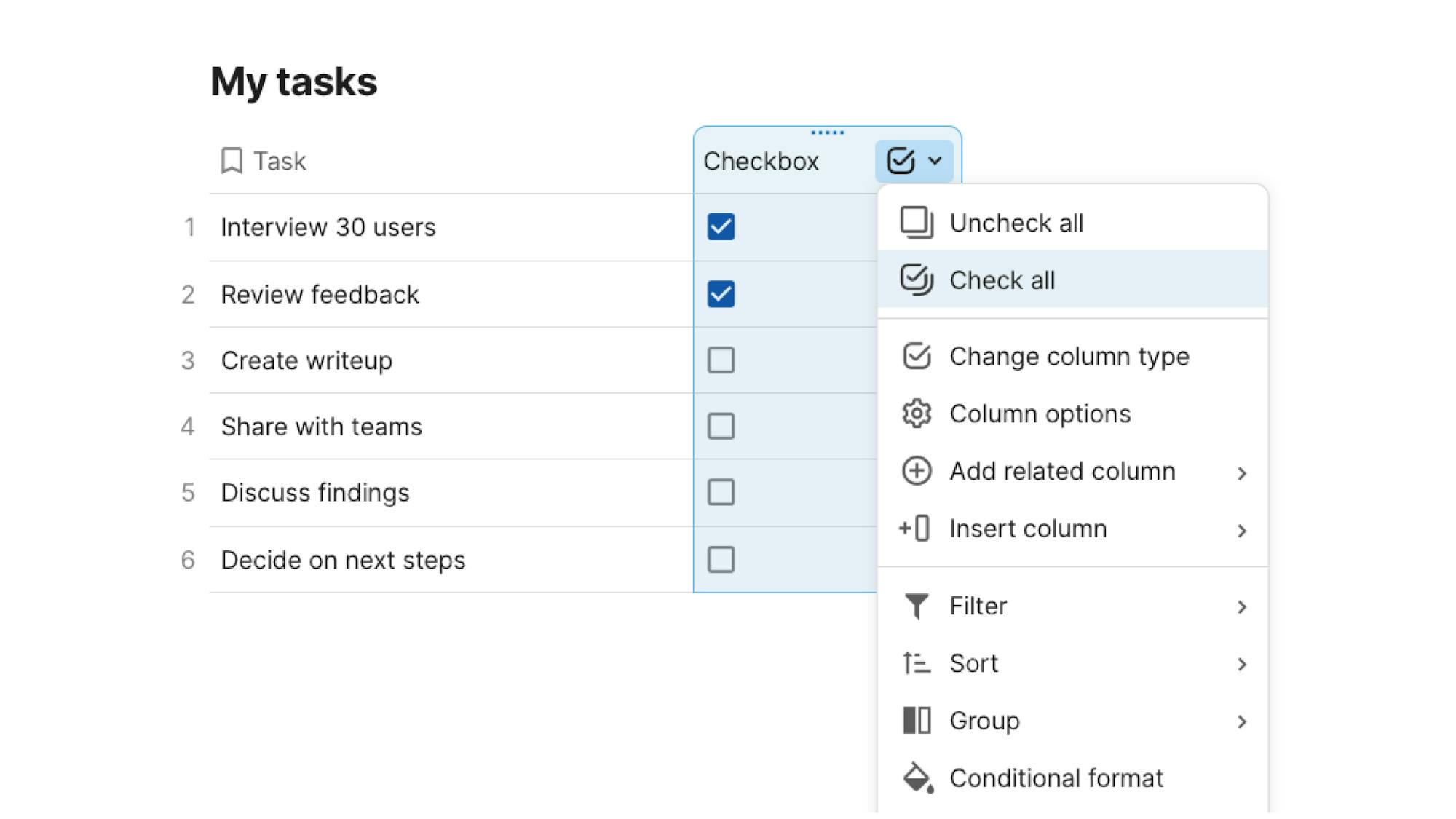 - AI column: Make any table magical with auto-generated custom content.