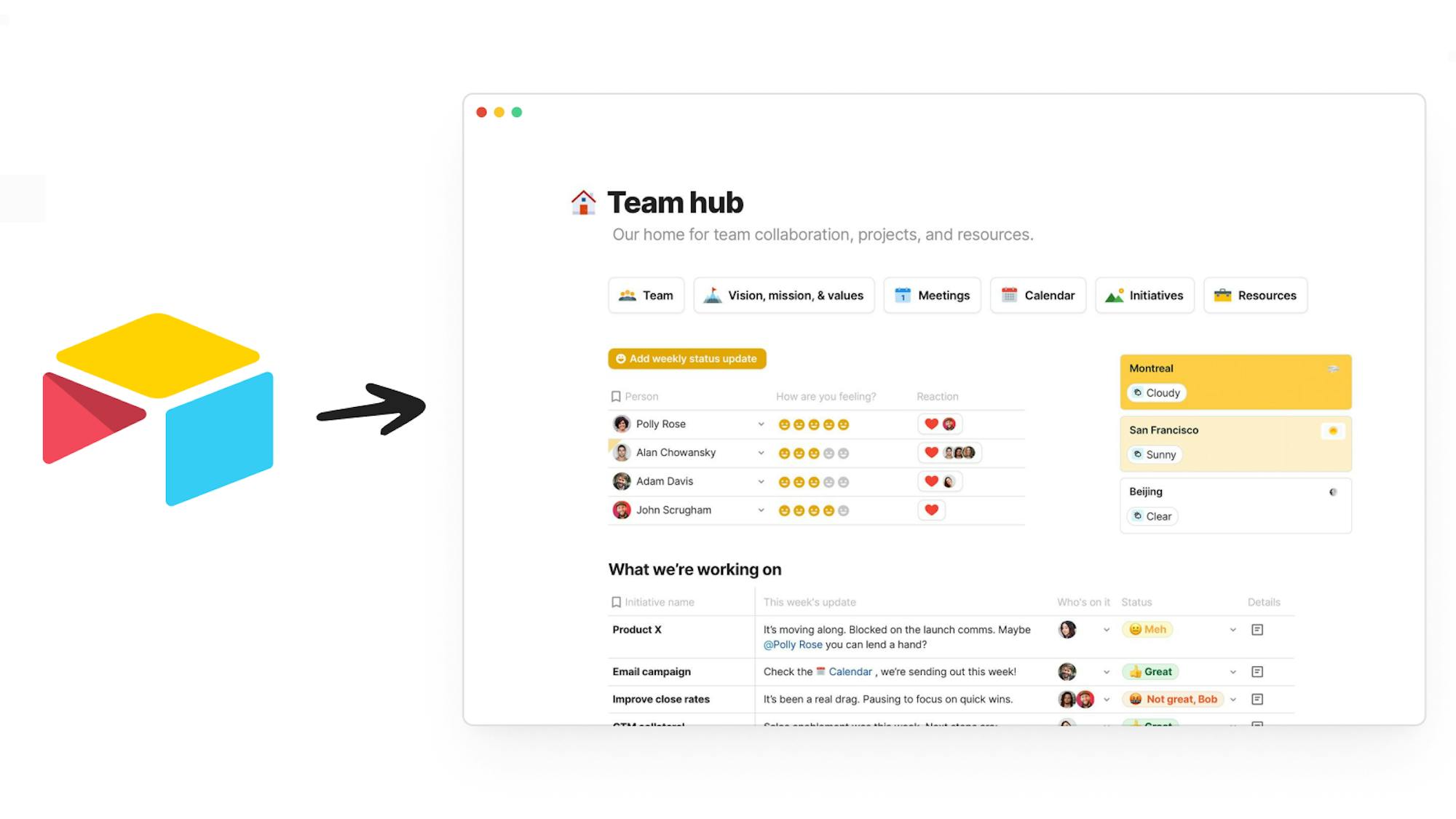 Move your team, projects, tasks, and all other fields into Coda with the Airtable Importer (beta). Learn more →