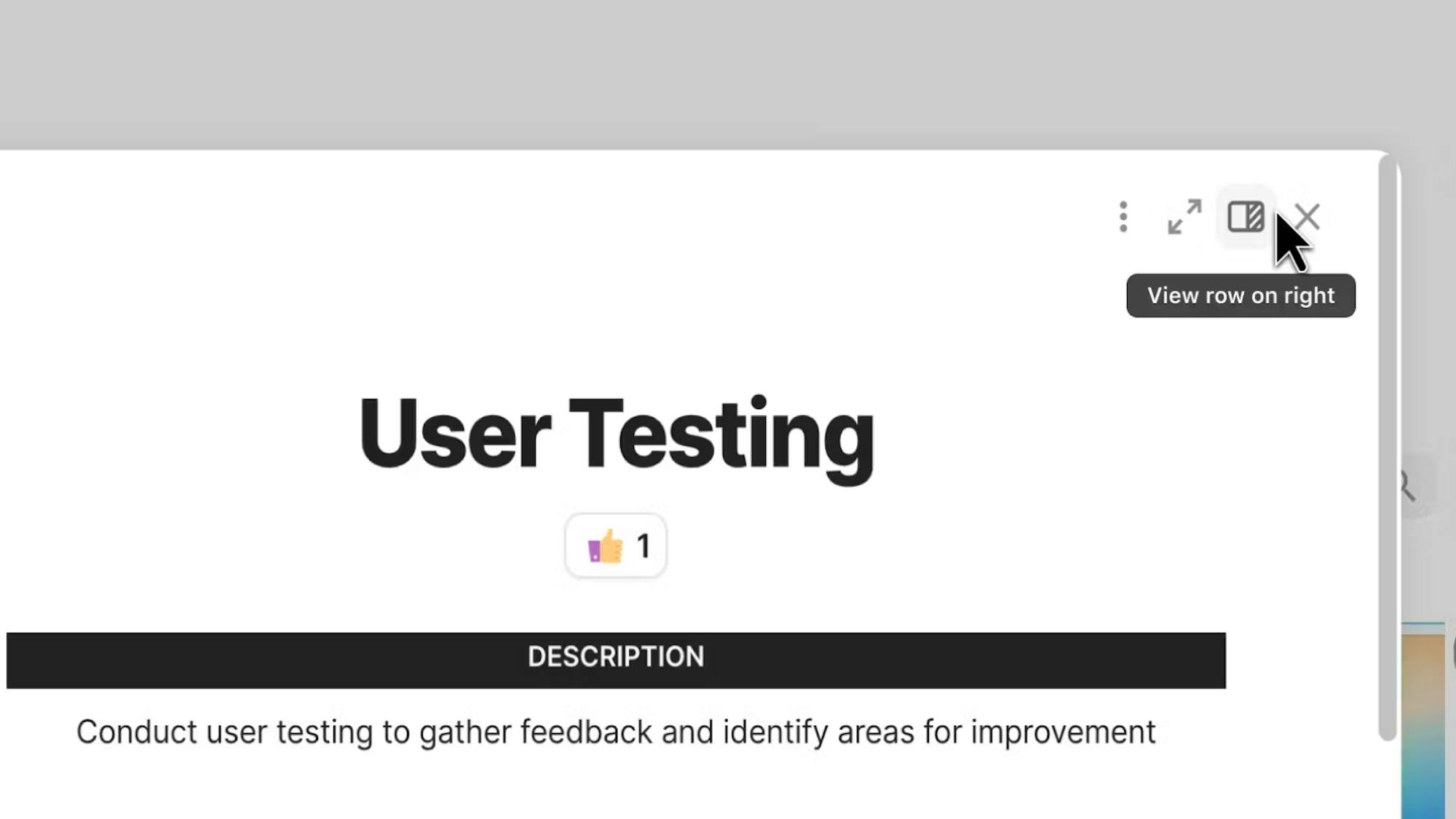 - Full screen a row: Hover over the row and click the expand icon to the left of the table and the expand icon in the upper right-hand of the expanded row.