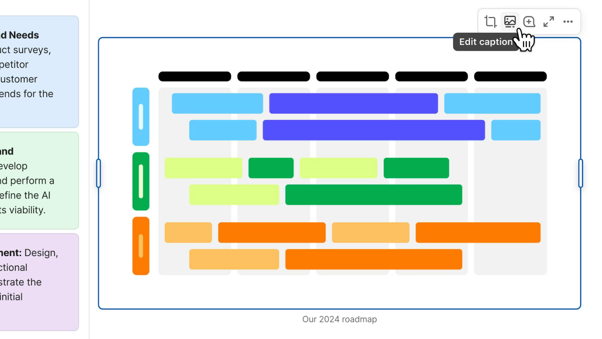 We’ve added a new toolbar for images inserted onto the canvas, from which you can crop, add a caption, or add/remove an outline from the image.