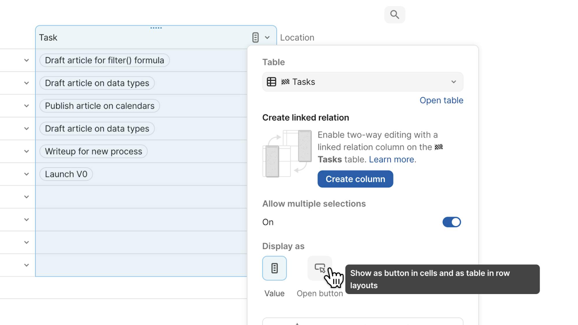 Lookups became “linked relations” this month. A new control and column type give you a way to see and edit the data on both sides of a linked relationship, like OKR statuses to their initiatives.