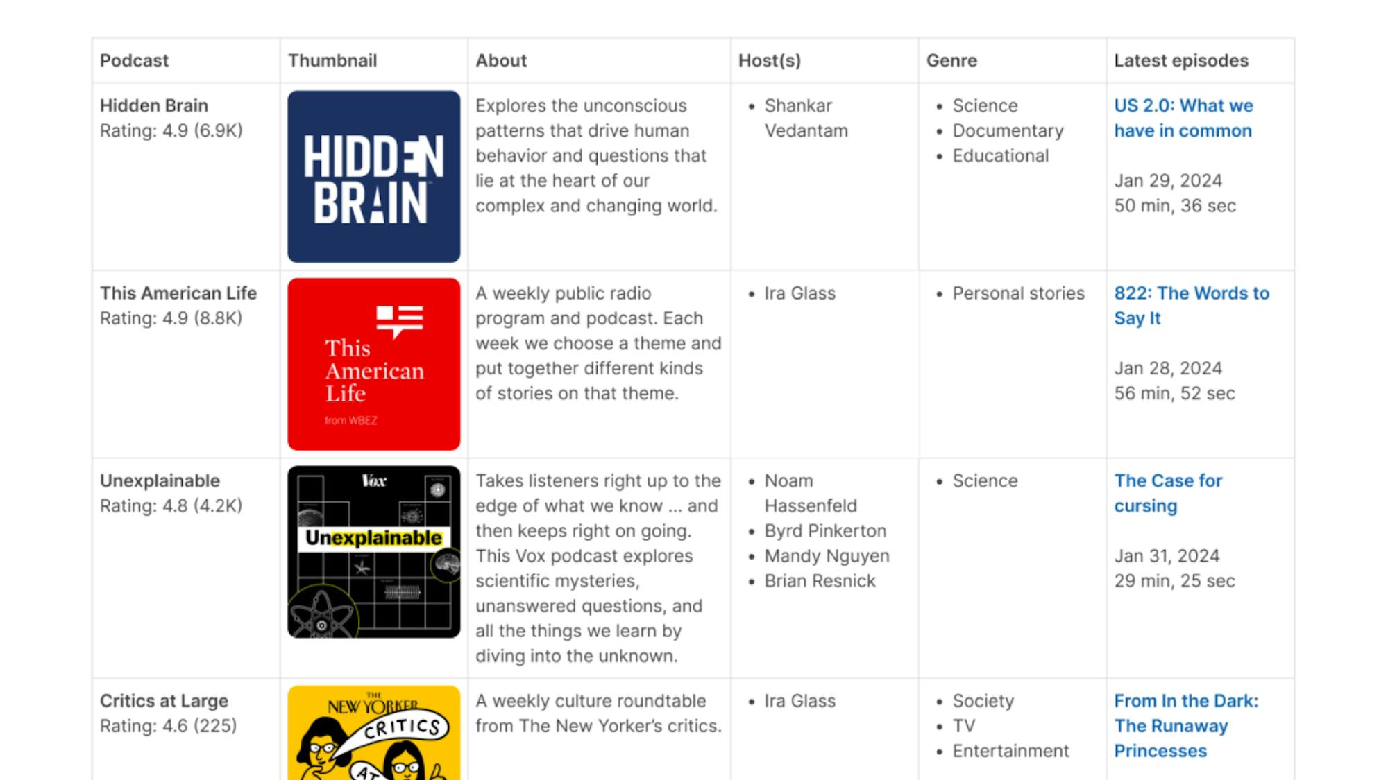 Convert a grid to a table