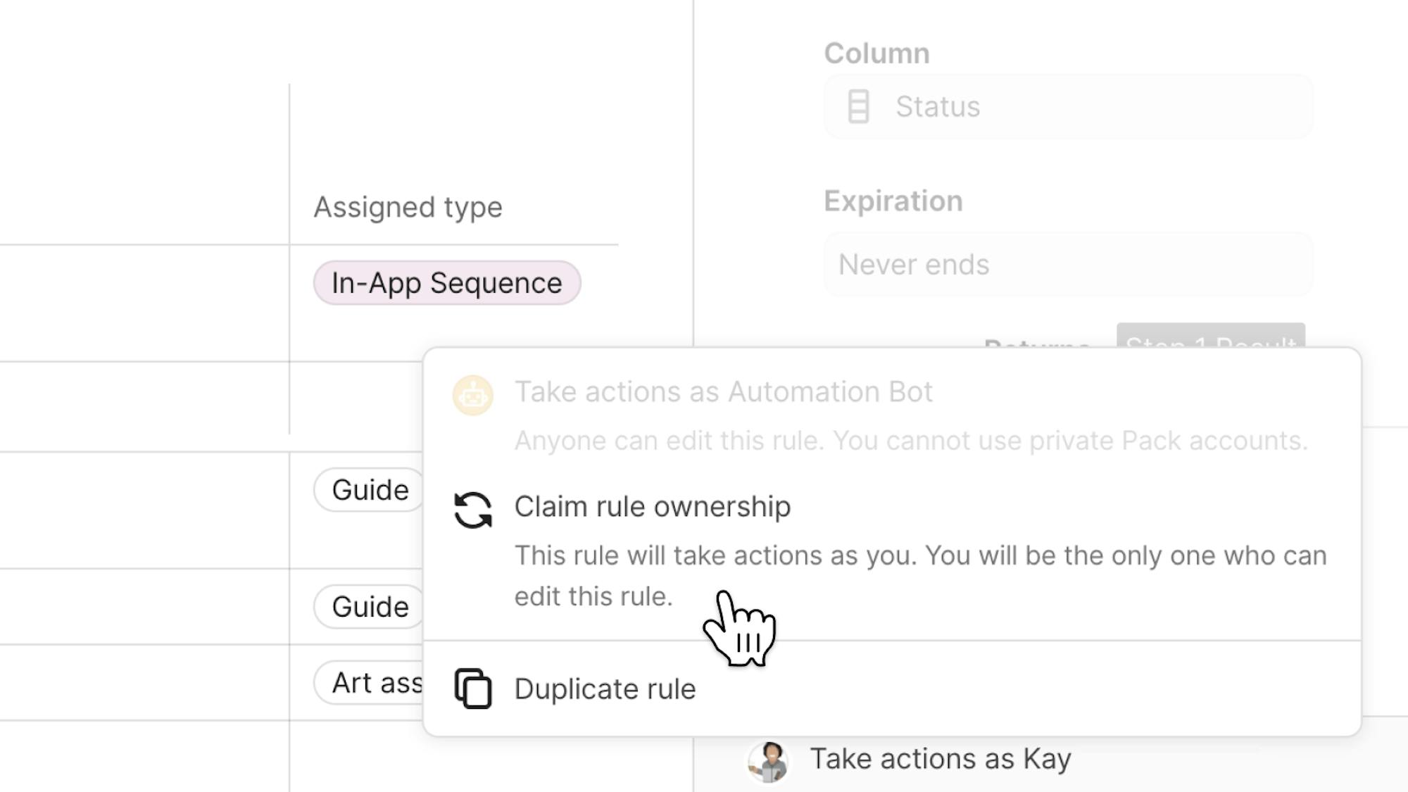 To avoid needing to duplicate and delete automations to make changes to an existing rule set up by someone else, you can claim ownership.