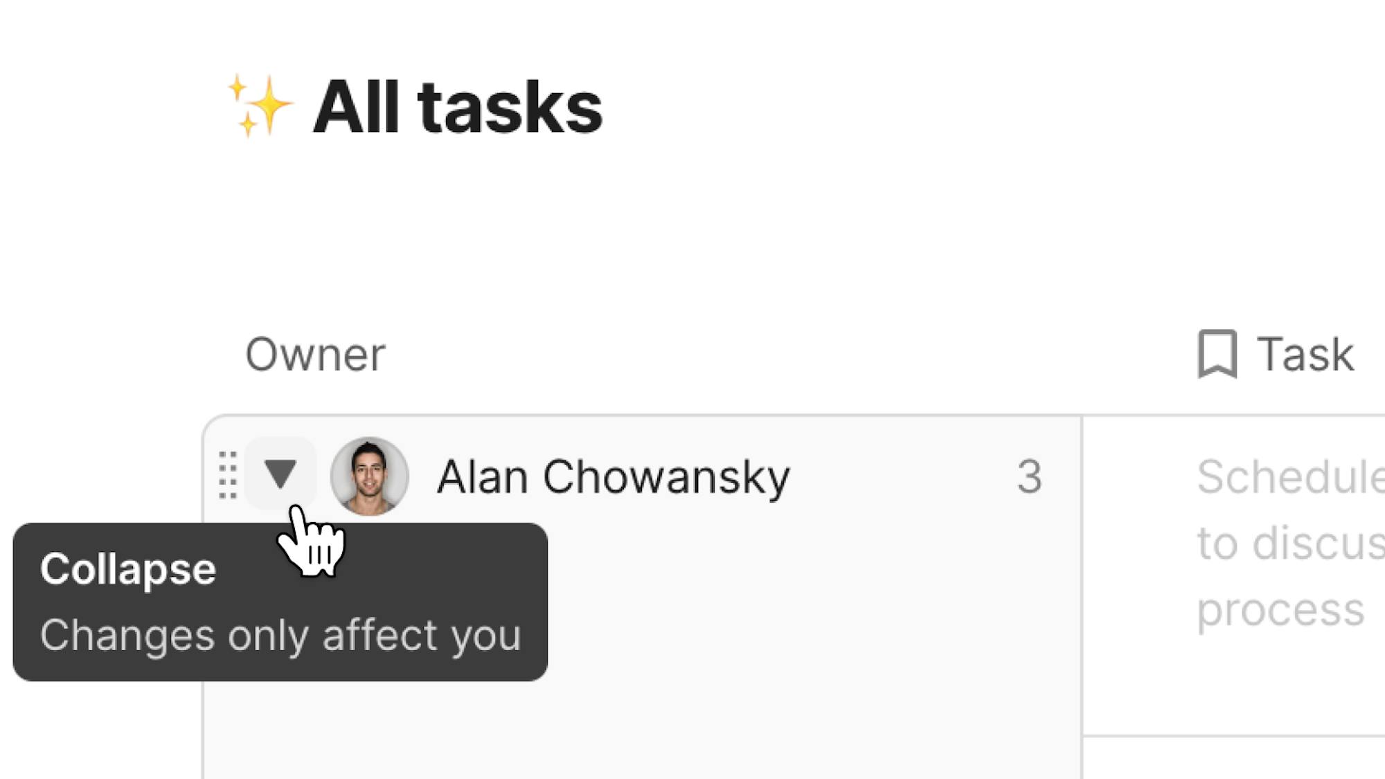 Expanding and collapsing a table group no longer affects your collaborators' views. You can also set the initial state you'd like them to see in the group options menu.