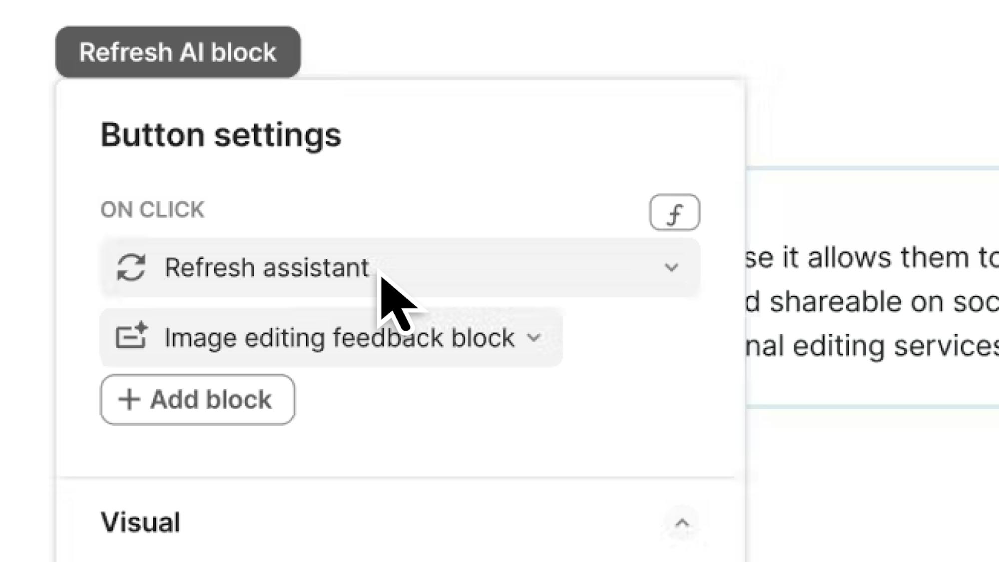 The ability to refresh an AI block or AI column is now a button option.