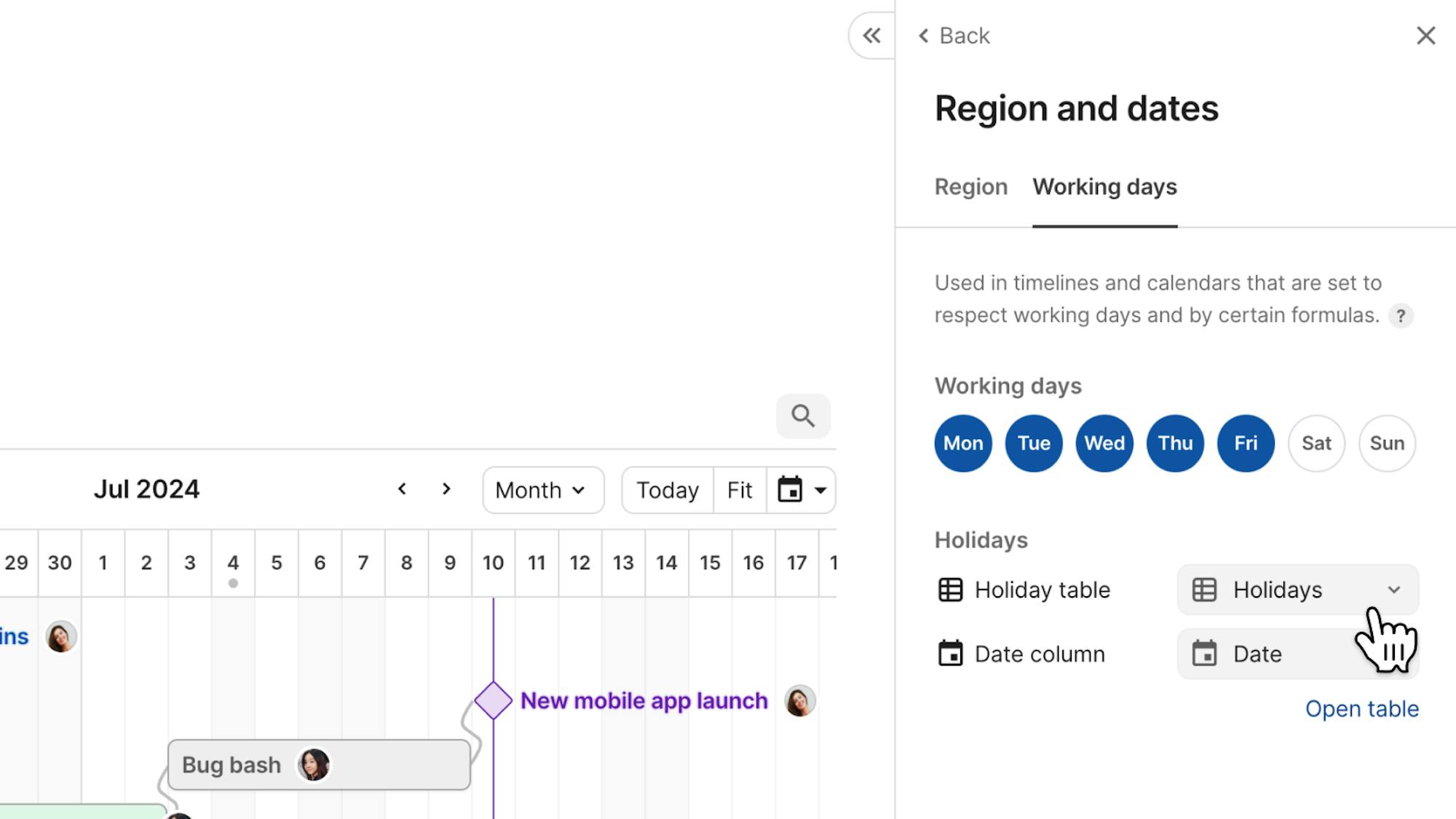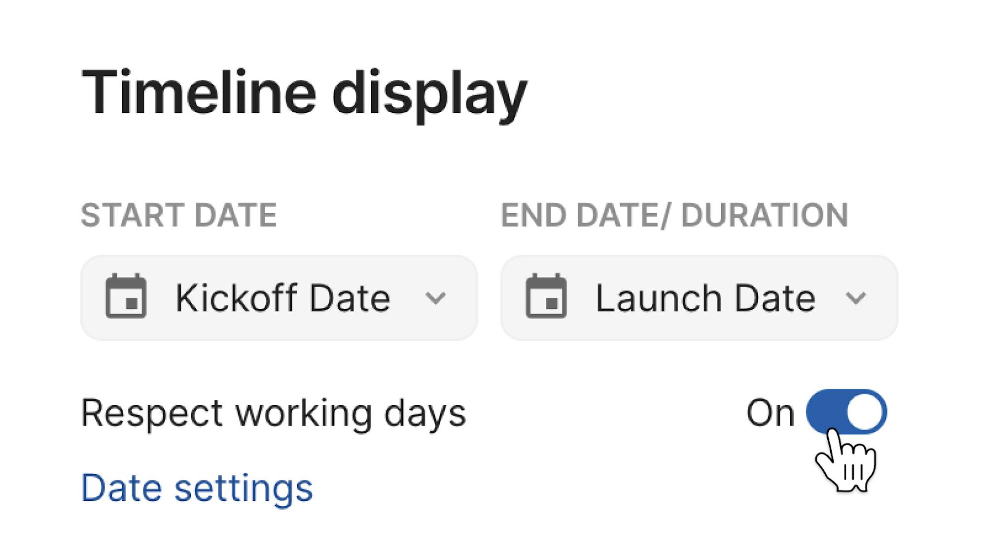 Dependencies now respect the custom working days you've set. Simply select the toggle under your timeline display to make task planning even easier.