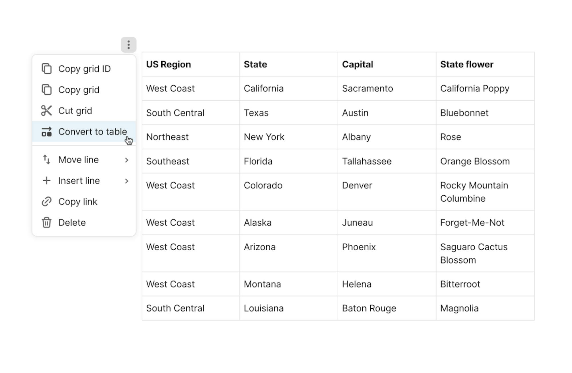 If you realize the information in your grid would benefit from the functionality of a table, you can now convert it easily.