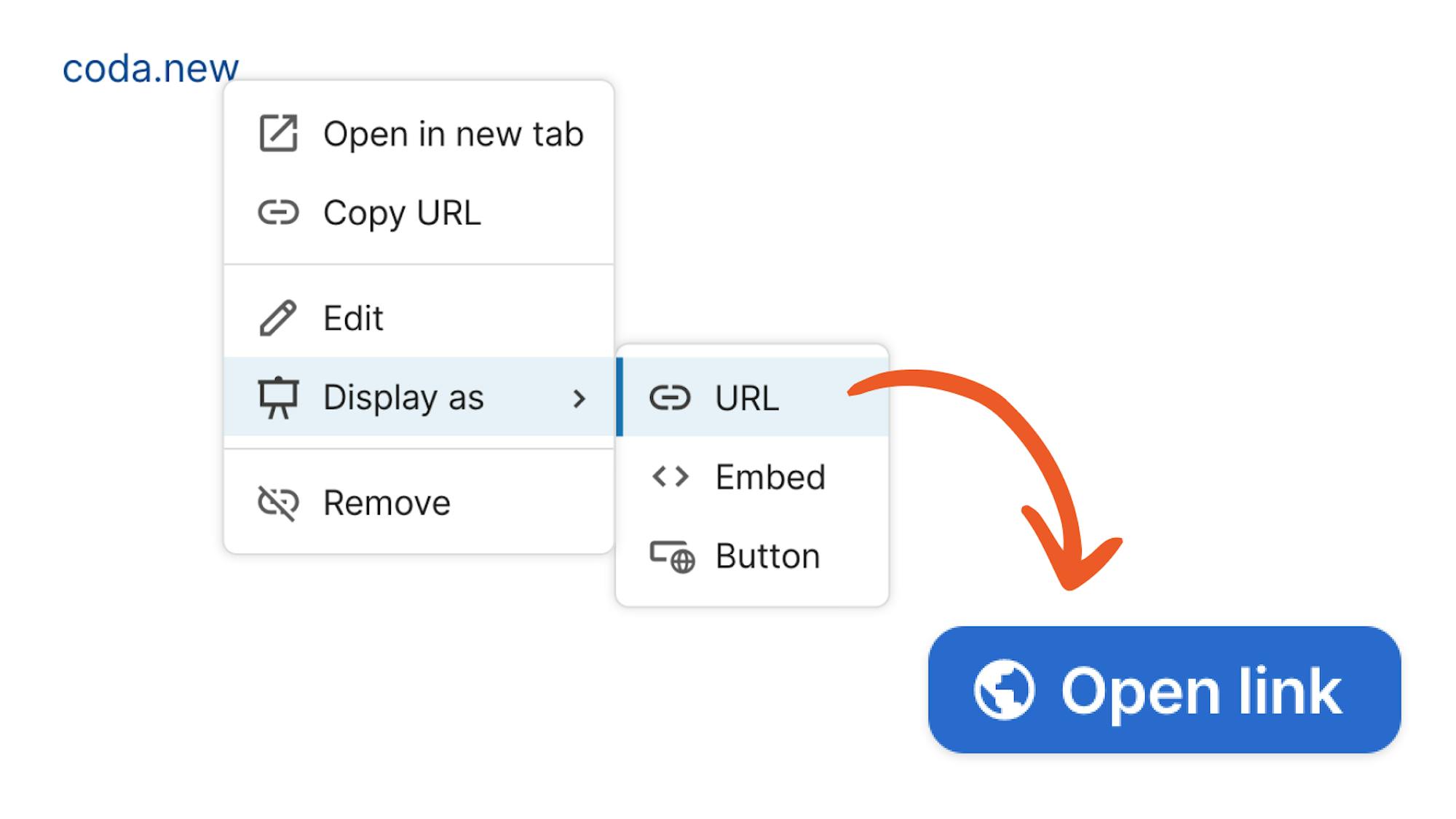 Simply paste a hyperlink into Coda and to get the option to convert it into a button.