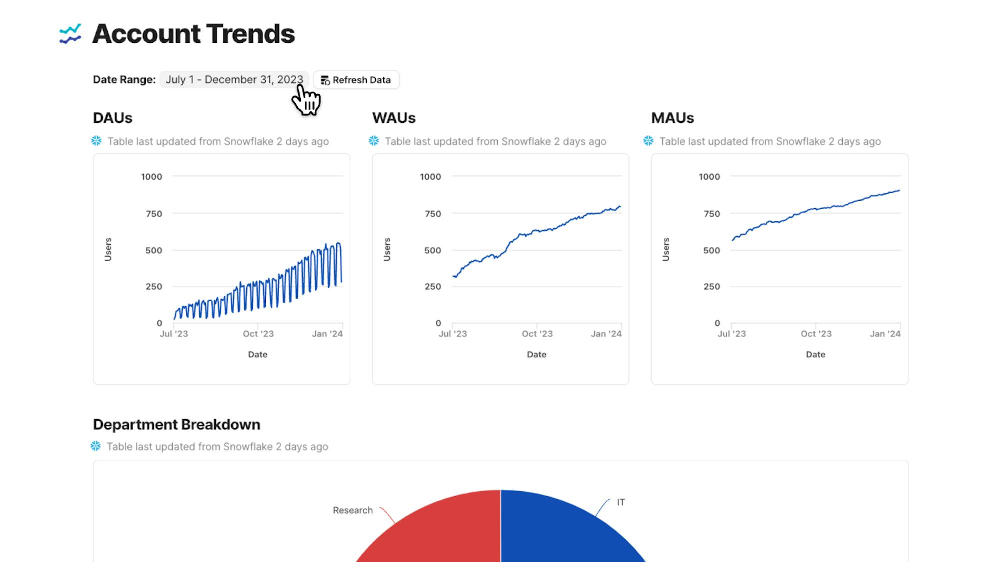 Coda is partnering with Snowflake to turn data into action. Our new Snowflake Pack lets you integrate live data seamlessly into your team's workflows. And because Packs are building blocks in Coda’s canvas, you can turn Snowflake data into a chart, you can add columns to it, and connect it to a different set of data as well.