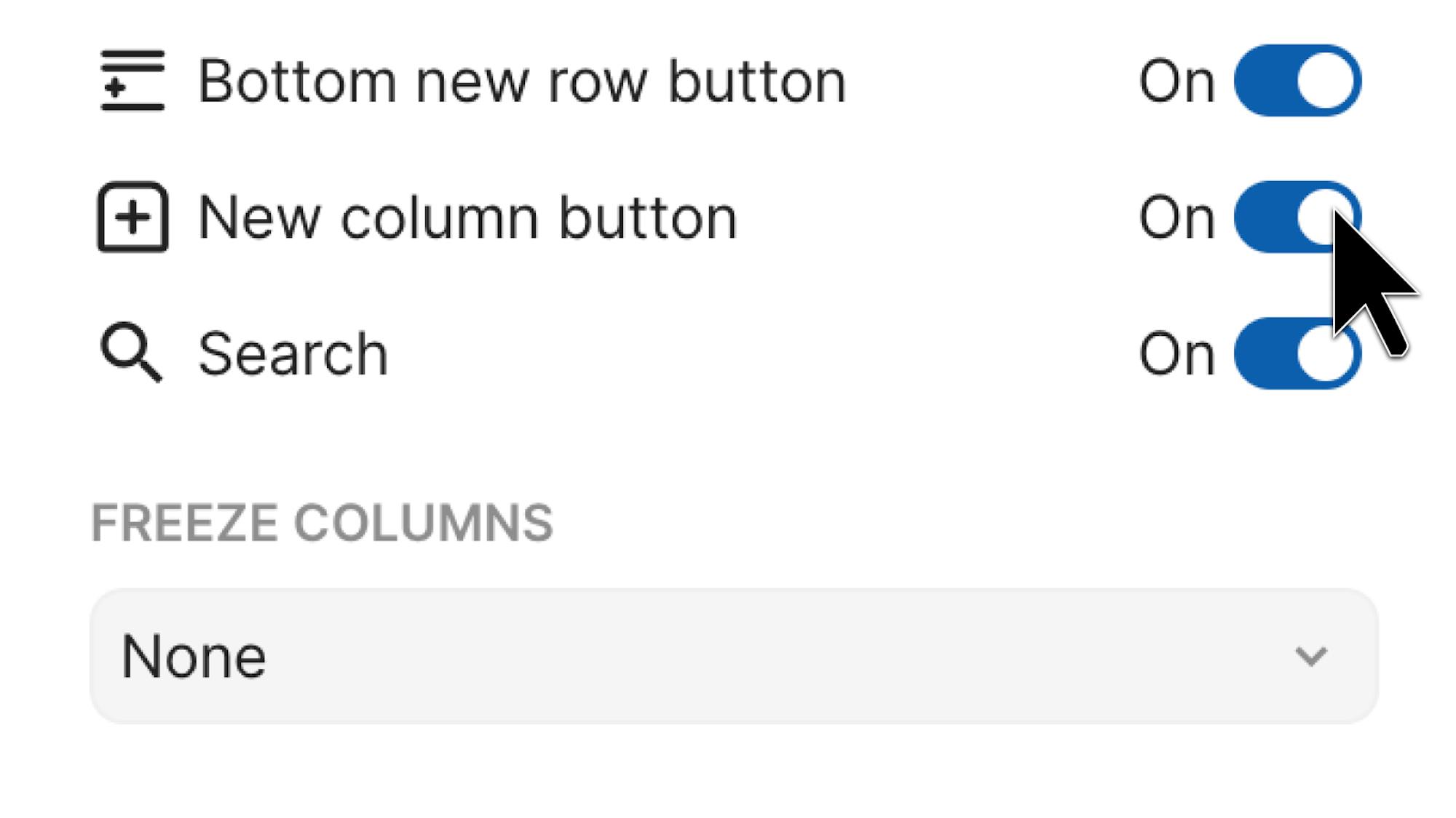 Quickly add new rows to any table or view with the New row button. This can be toggled on or off from the redesigned header options menu.Streamlined setup and usage of subtables