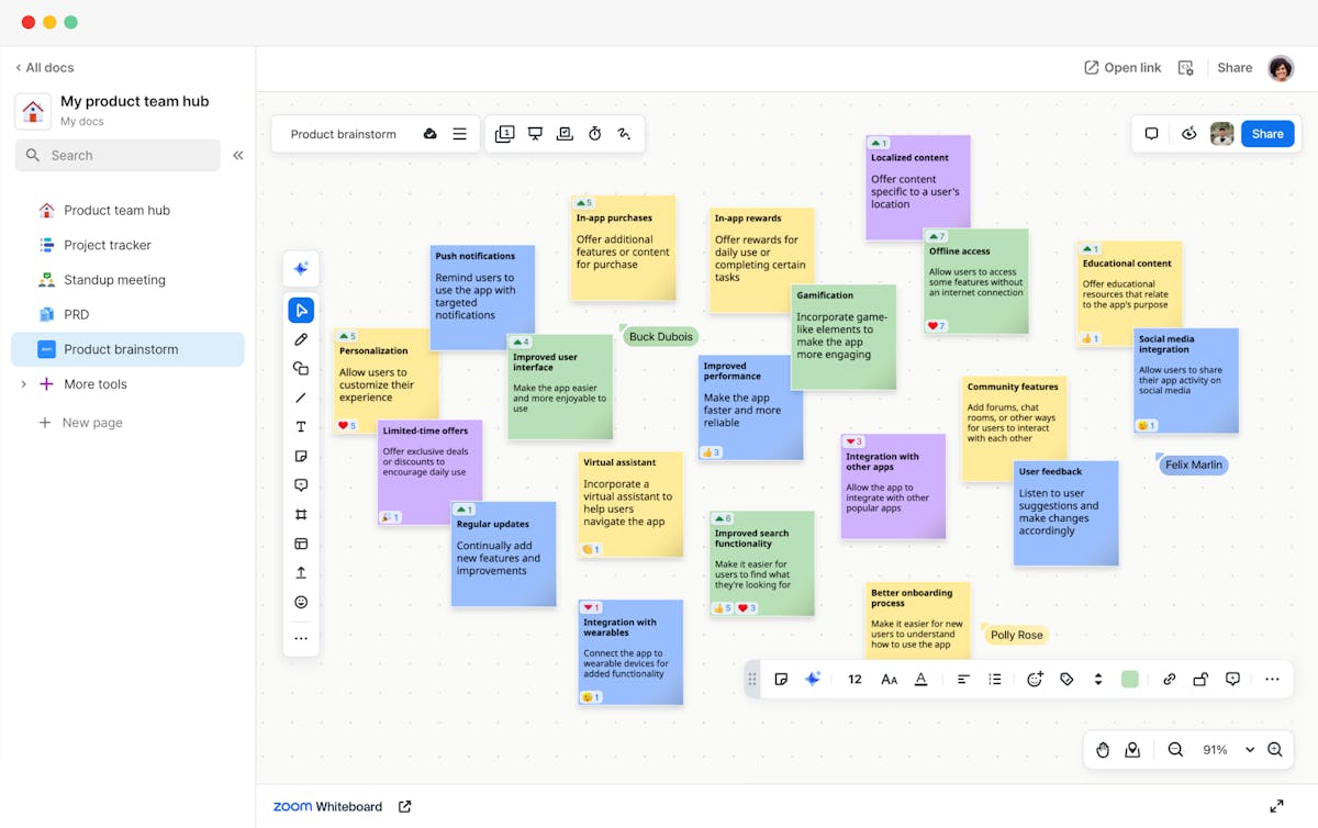 Sketch out ideas in Zoom, then continue the discussion in your Coda doc.