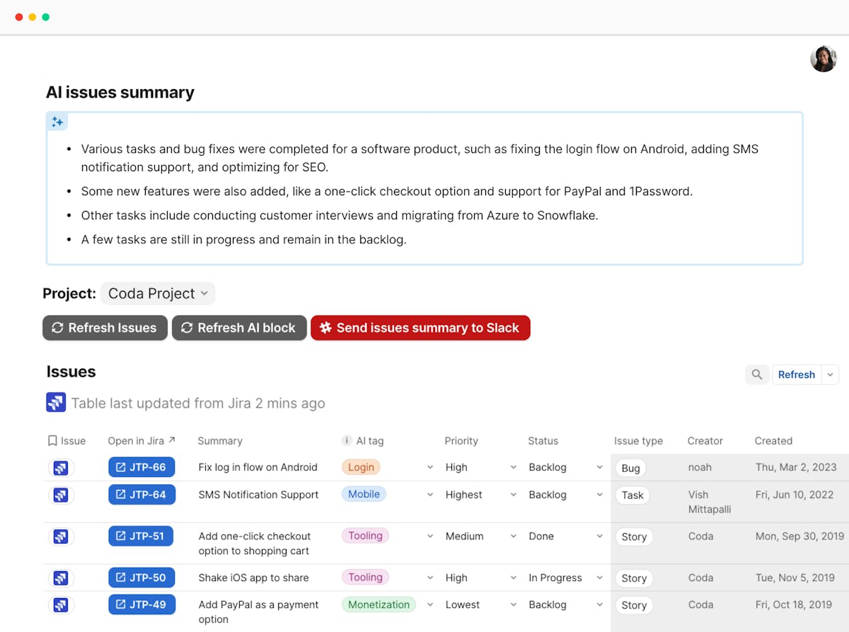 Notion AI only works with fragments of your data. Coda AI works across docs, tools, and workflows.
